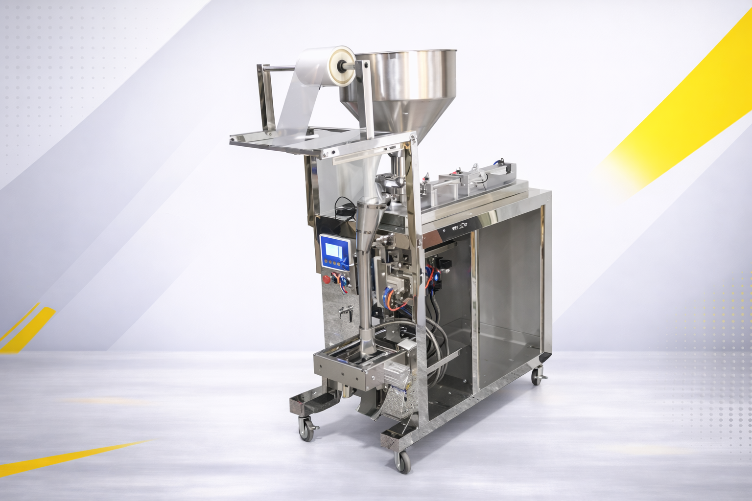 Cette ensacheuse automatique est conçue pour le conditionnement de liquides ou produits semi-visqueux : sauces, crèmes, pâtes à teneur moyenne de viscosité, produits cosmétiques liquides, etc. Elle forme le sachet, le remplit, le scelle — tout cela de manière automatique. Idéal pour les entreprises alimentaires ou cosmétiques souhaitant automatiser leur emballage.