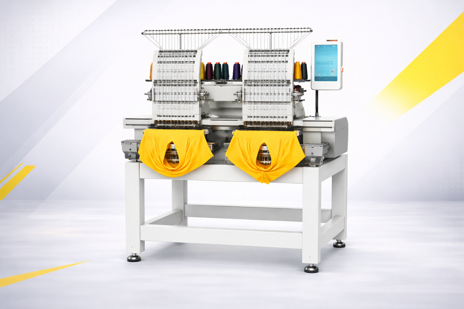 Cette machine à broder 2 têtes est conçue pour les ateliers professionnels souhaitant augmenter leur productivité. Grâce à ses deux têtes indépendantes, elle permet de broder deux pièces en même temps, réduisant ainsi le temps de production et optimisant le rendement.