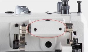 Levier gradué pour régler la course du pied alternés en fonction de l’épaisseur du matériau.