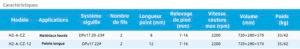 Hauteur de relevage du pied presseur : réglable via levier gradué entre 7,5 et 16 mm selon version (H2‑CZ jusqu’à 8 mm, H2‑A‑CZ‑12 jusqu’à 12 mm)