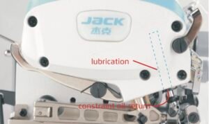 • Lubrification totalement fermée : barre à aiguille scellée et circuit de retour d’huile pour éviter toute fuite ou tache sur le tissu